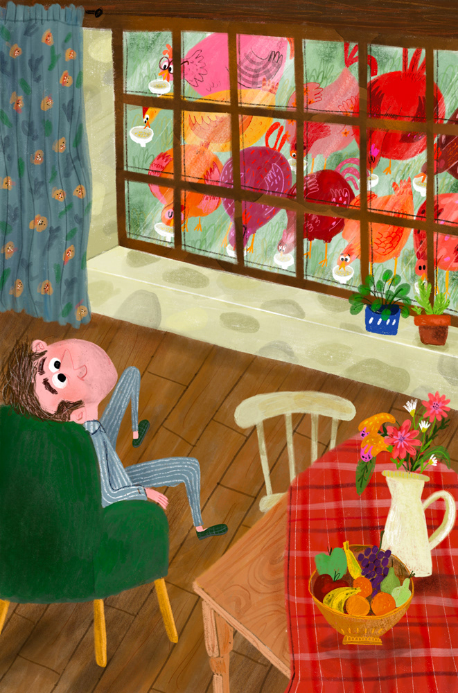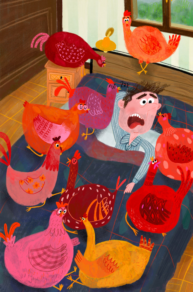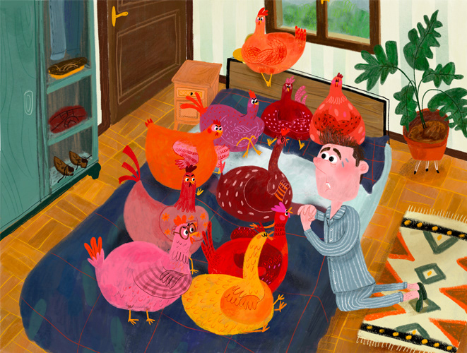 A short illustrated story for textbooks that shows how 10 hens invade the house of the protagonist, and it will not be easy to get rid of them.